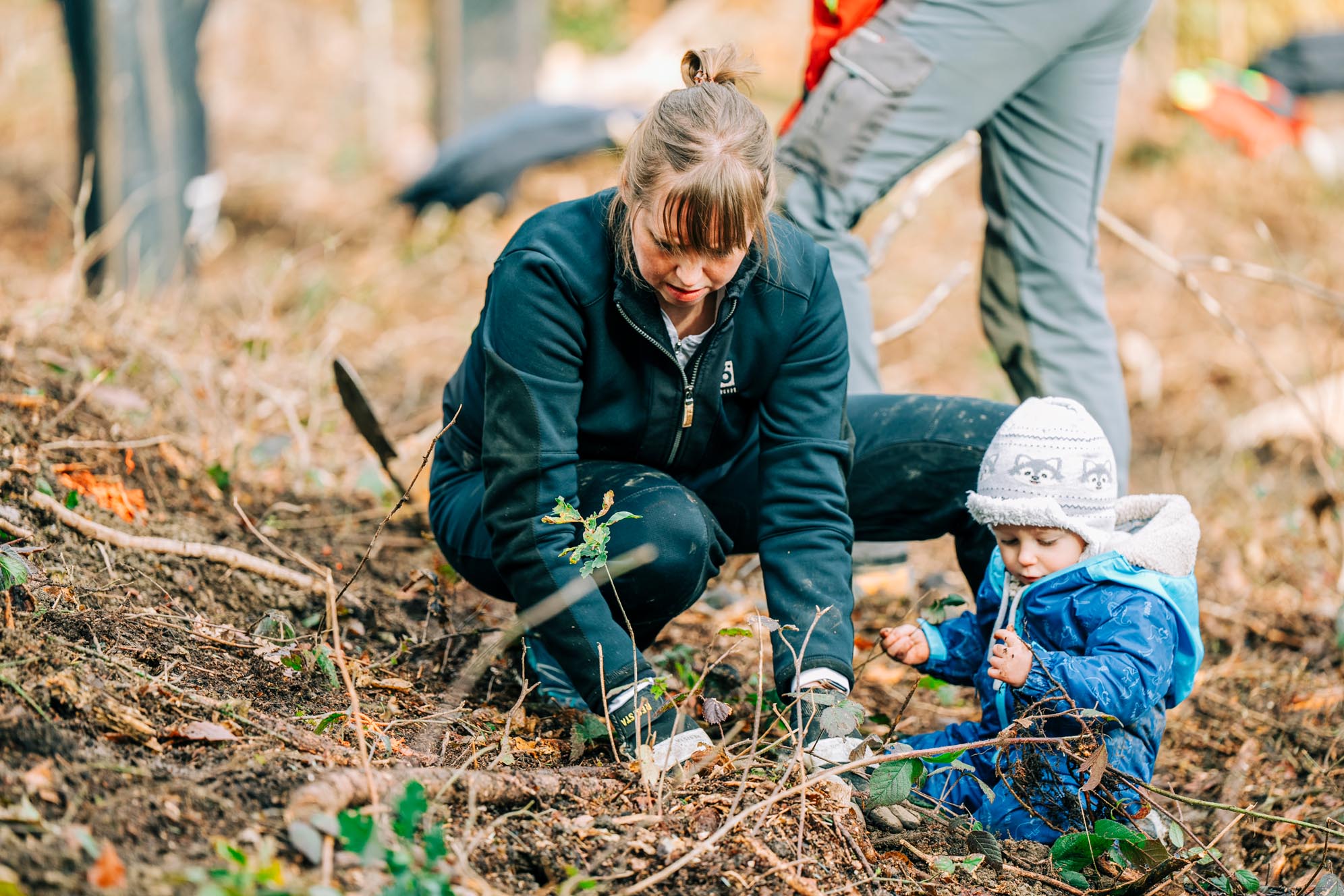 Insgesamt nahmen 18 Erwachsene und acht Kinder am Baumpflanztag teil. Fünf Mitarbeitende des ortsbürgerlichen Forstbetriebs halfen den Familien, die jungen Bäumchen fachgerecht zu pflanzen. So wurden insgesamt 96 Traubeneichen und 25 Vogelkirschen gepflanzt und durch Einzelschütze vor Wildverbiss geschützt.