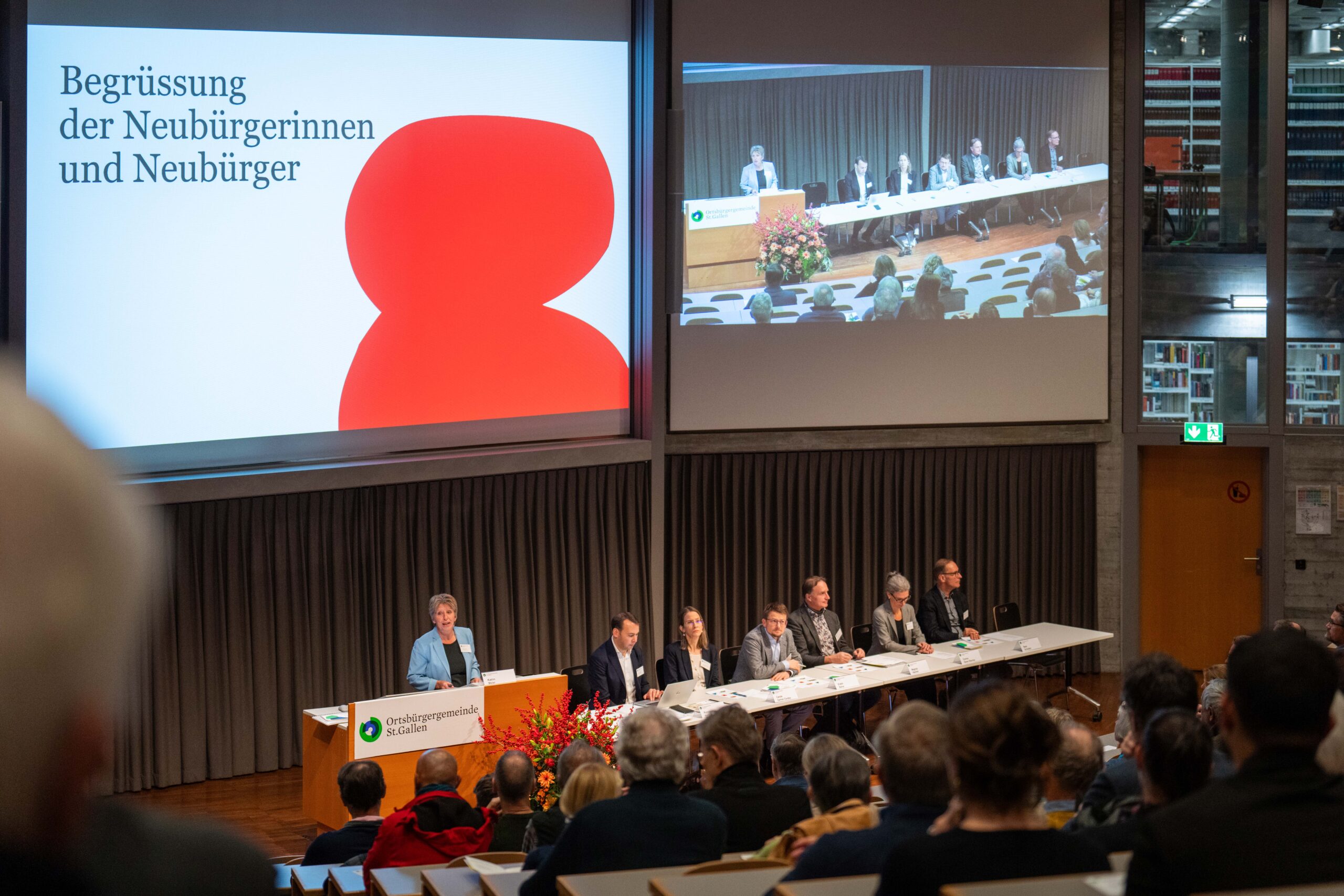 Gleichzeitig mit der Bürgerversammlung fand die Neubürgerfeier statt, an welcher die Neubürgerinnen und Neubürger ihre Bürgerbriefe erhalten haben. Im Jahr 2023 wurden insgesamt 214 Personen in St.Gallen eingebürgert. Davon hatten 37 Personen eine Schweizer und 177 eine ausländische Staatsbürgerschaft.