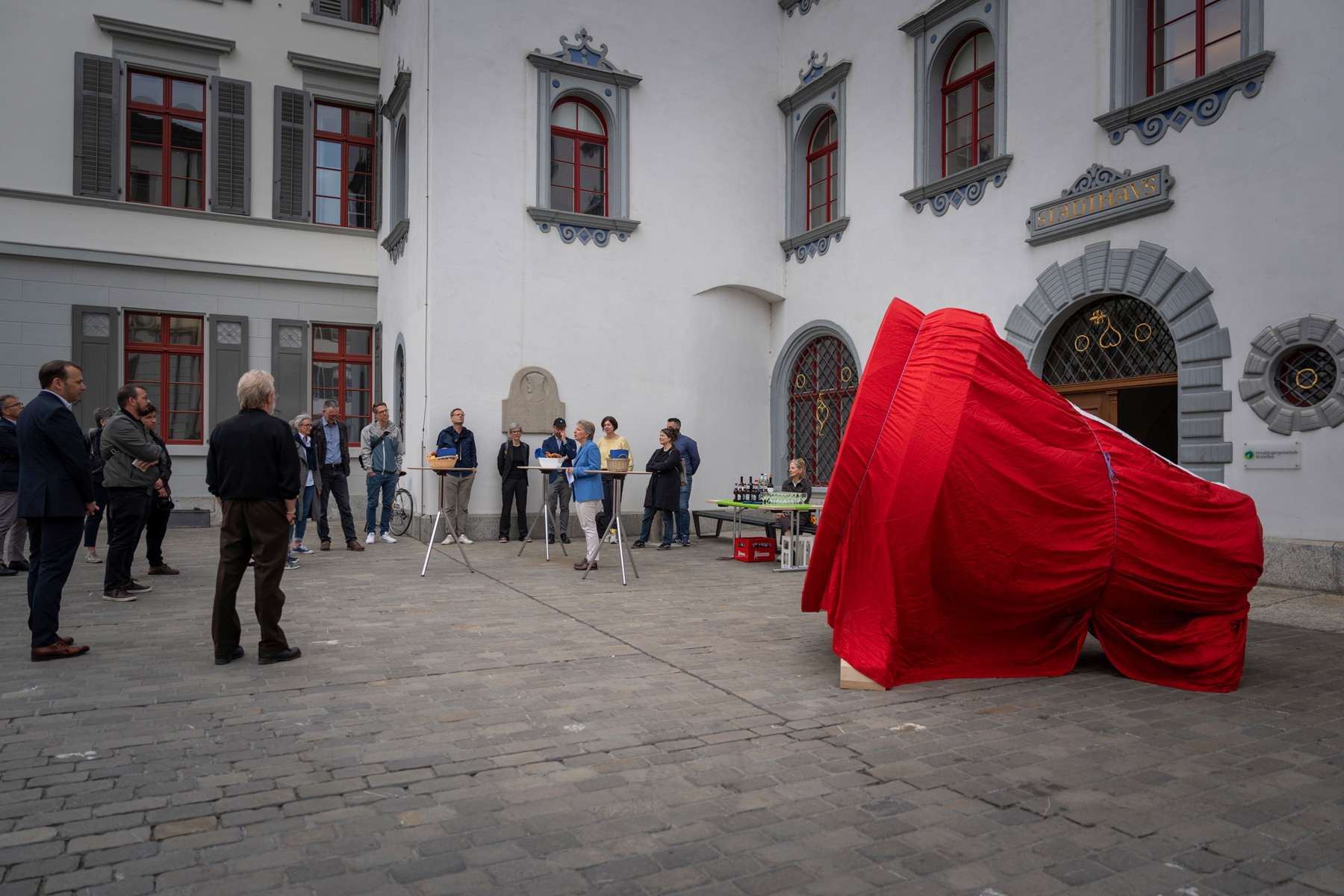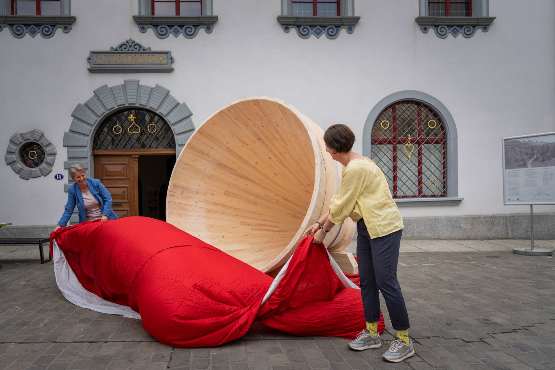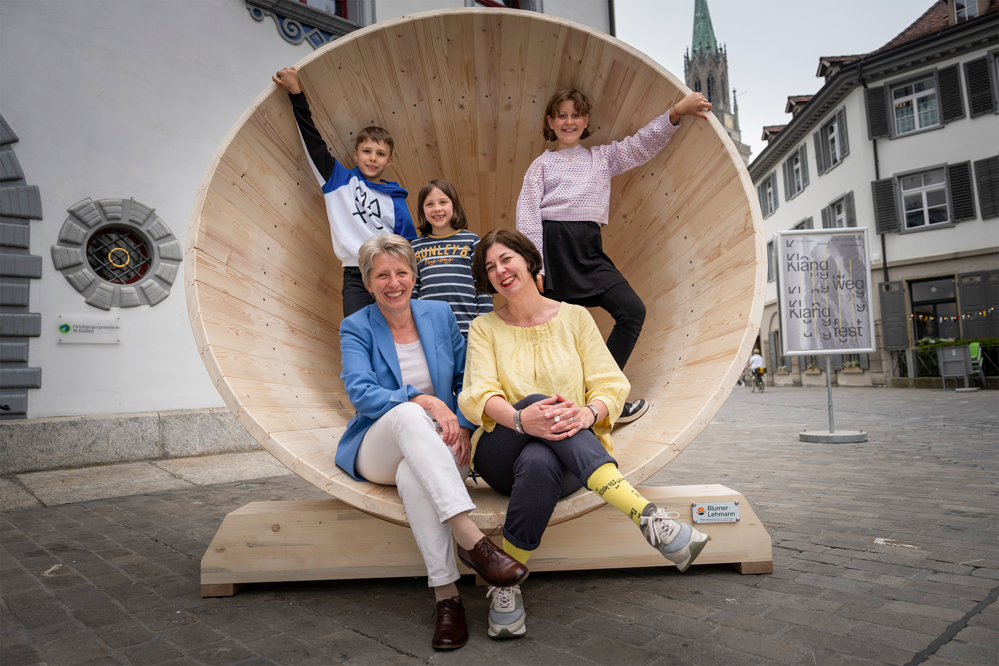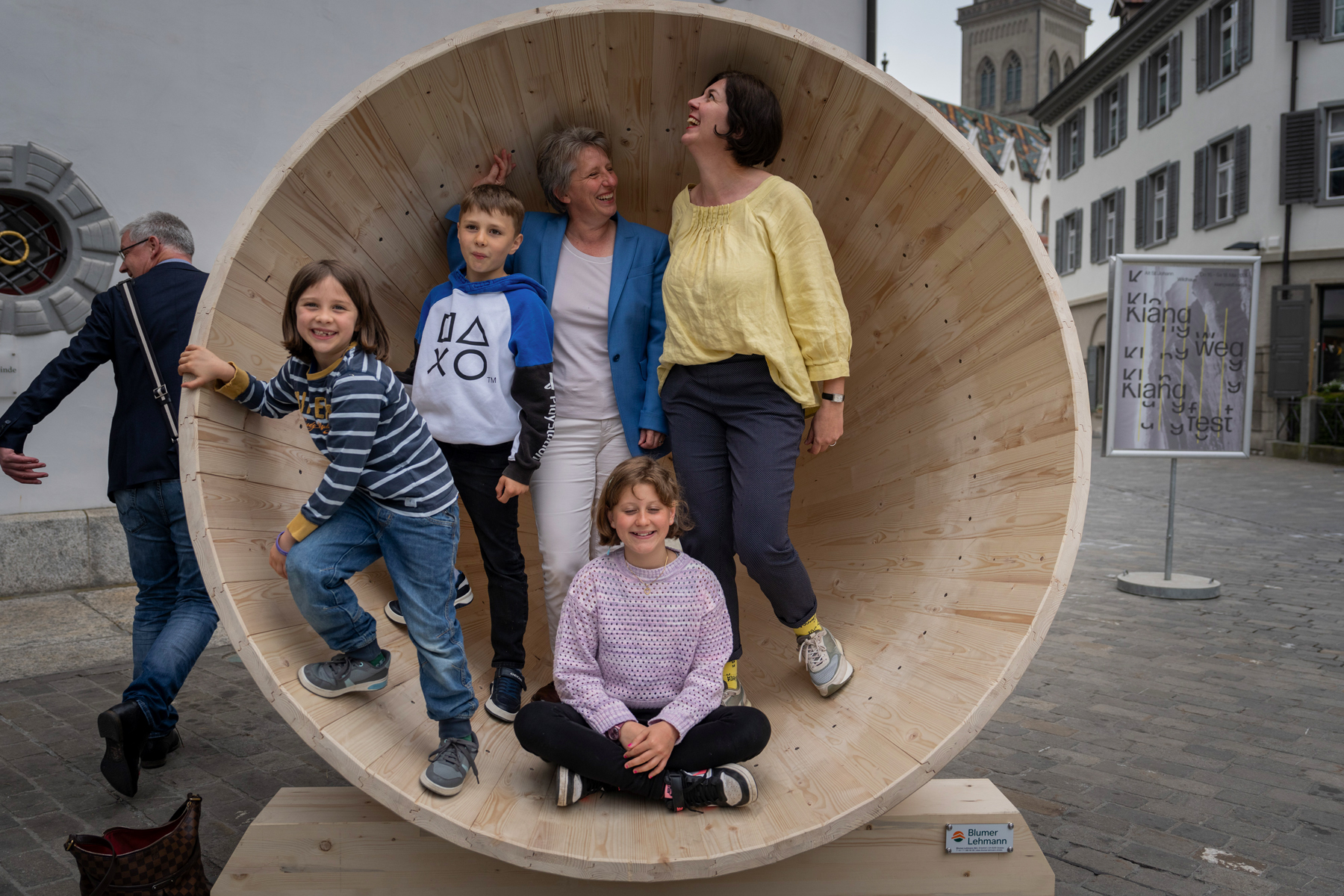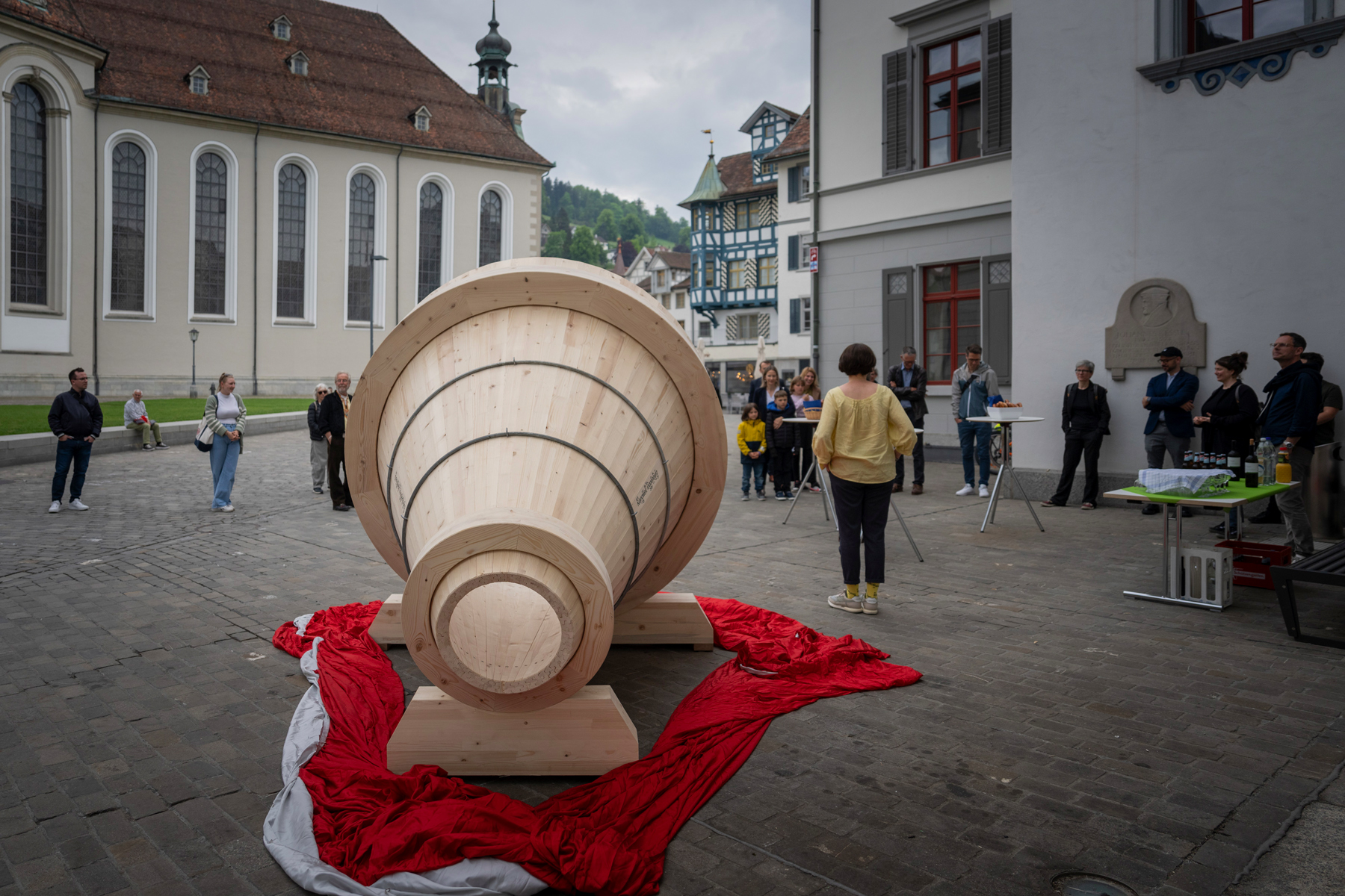 Bevor die Klangskulptur entlang des Klangwegs Toggenburg installiert wird, steht sie für während der Sommermonate vor dem Stadthaus der Ortsbürgergemeinde. Sie macht auch auf das neue Förderprogramm für stadtsanktgallische Musikformationen und Chöre aufmerksam, welche die Ortsbürgergemeinde St.Gallen ab Frühjahr 2025 im Sinne von Atelieraufenthalten im Klanghaus und der eigenen Gruppenunterkunft anbietet. Chöre und Musikformationen können sich noch bis Ende Mai dafür bewerben. Dasselbe gilt für stadtsanktgallische Vereine.