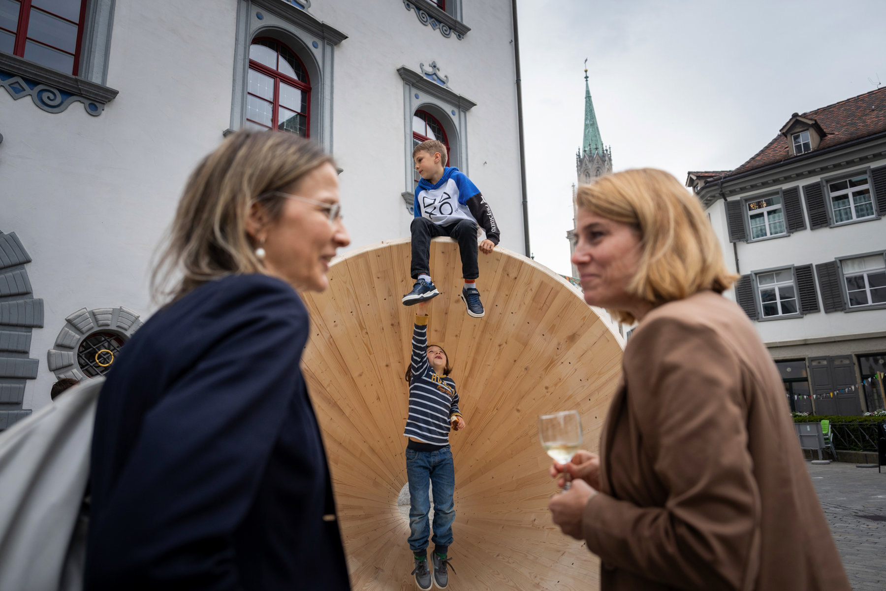 Bis anfangs August können St.Gallerinnen und St.Galler sowie Besucherinnen und Besucher in der Stadt vor dem ortsbürgerlichen Stadthaus den Klang ihrer Umwelt auf besondere Art und Weise erleben. Anlässlich der laufenden Erneuerung der ortsbürgerlichen Gruppenunterkunft Jennyhaus in Wildhaus schenkt die Ortsbürgergemeinde St.Gallen der Klangwelt Toggenburg eine Klangskulptur. Das Geschenk ist Ausdruck der engen Zusammenarbeit von Ortsbürgergemeinde und Klangwelt rund um das Klanghaus Toggenburg und der benachbarten ortsbürgerlichen Gruppenunterkunft Jennyhaus, die beide im Frühling 2025 eröffnet werden.