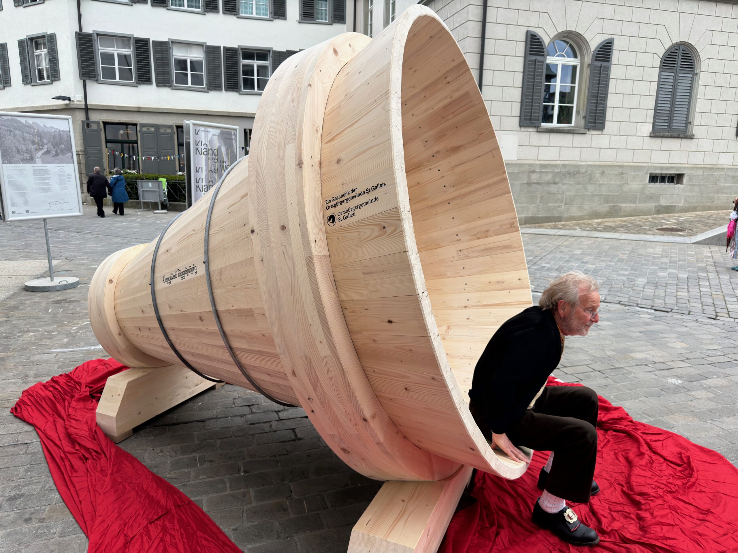 Die Ortsbürgergemeinde St.Gallen schenkt dem Klangweg Toggenburg einen rund 2x3m gros-sen, hölzernen Bet(t)ruftrichter. Nach seiner Station in St.Gallen wird er am Klangweg im Toggenburg installiert. Die Klangskulptur weist gleichzeitig auf die Wiedereröffnung des Klangwegs Toggenburg am Samstag, 18. Mai 2024, und auf die Eröffnung des Jennyhauses der Ortsbürger-gemeinde St.Gallen und des Klanghauses im Frühling 2025 hin.