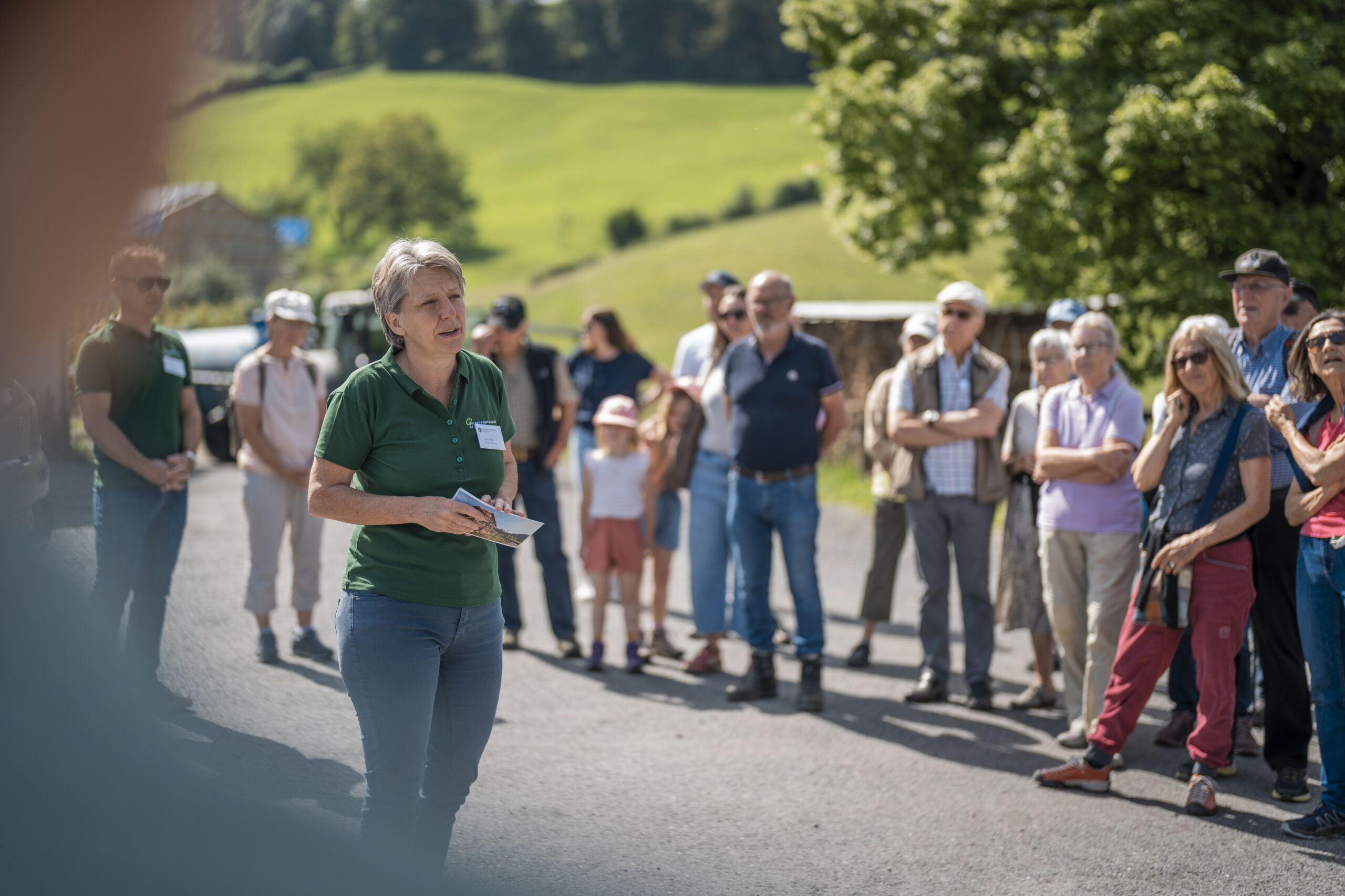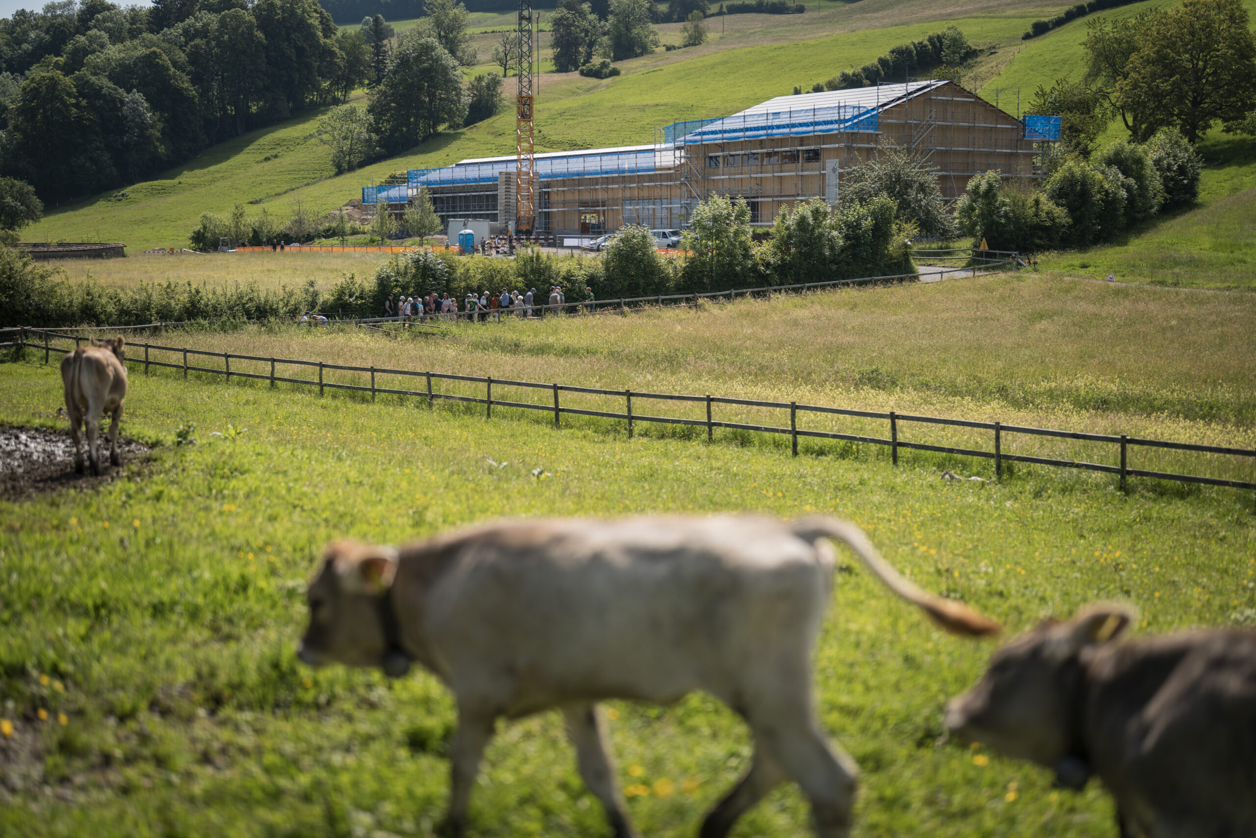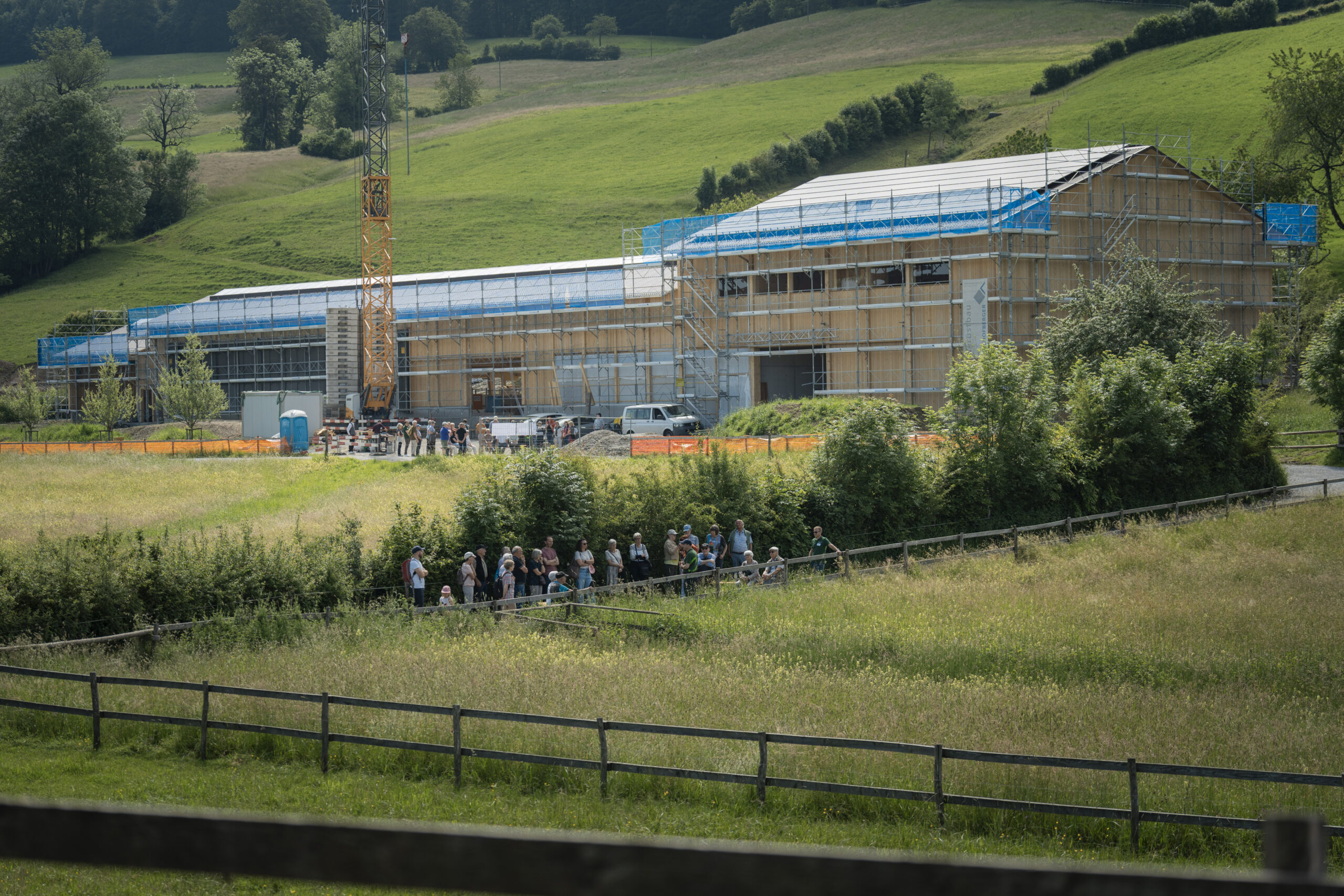 Rund 80 Bürgerinnen und Bürger nahmen am Samstag an der Matinée der Ortsbürgergemeinde teil. Die Veranstaltung führte zum Hof Wiesenweid beim Scheitlinsbüchel, wo die Ortsbürgergemeinde aktuell in einen neuen Rindviehlaufstall investiert, um den Landwirtschaftsbetrieb für die Zukunft zu sichern.