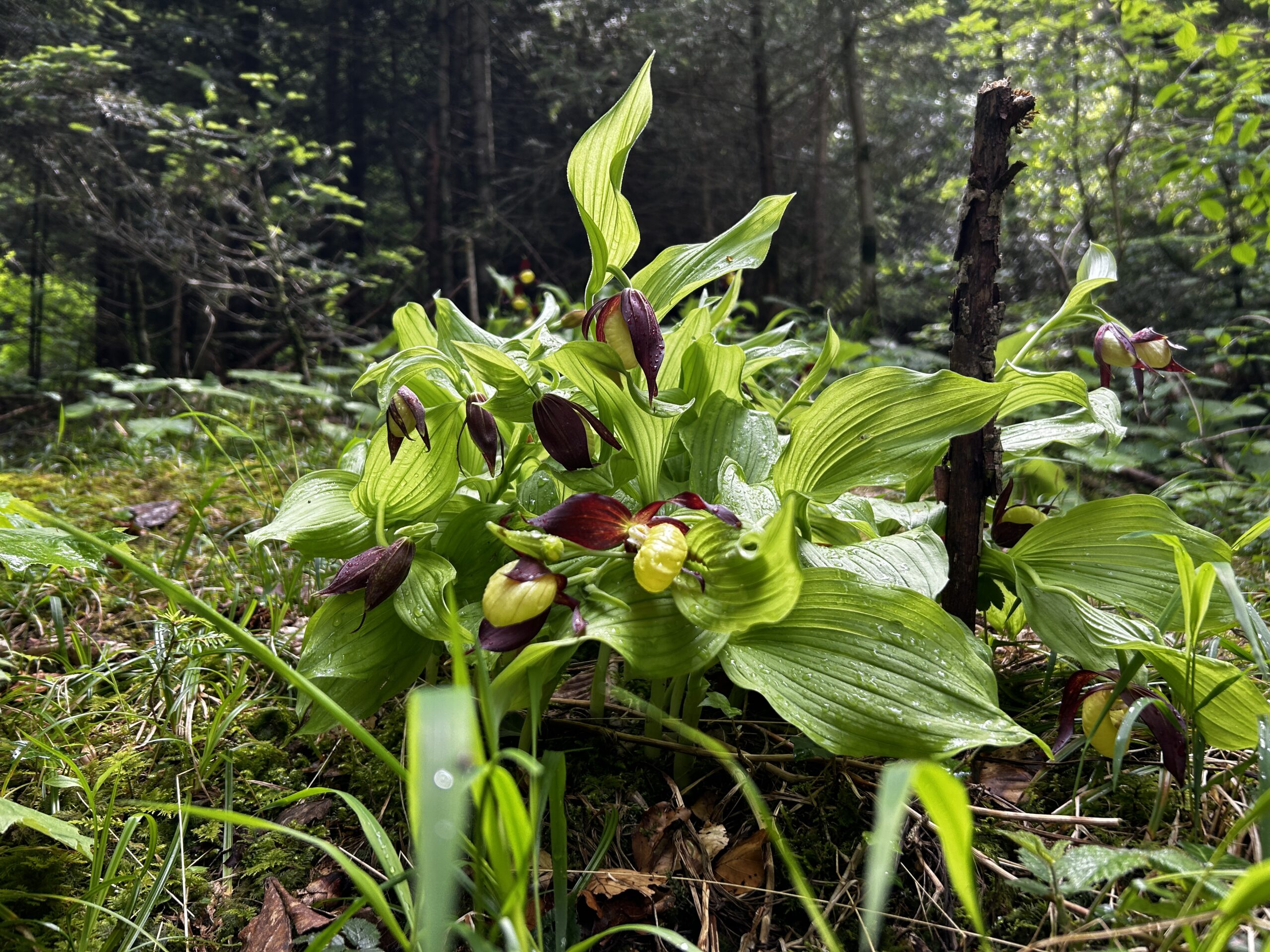 Auch in den Wäldern der Ortsbürgergemeinde gedeihen prächtige Orchideen. Dies ist vor allem den intensiven Pflegemassnahmen des Forstbetriebs zu verdanken. Durch gezielte Durchforstung entstanden an verschiedenen Stellen Waldlichtungen, die Orchideen zum Wachsen benötigen. Jetzt blühen das weisse Waldvögelein, der Frauenschuh und weitere Orchideenarten im ortsbürgerlichen Wald.