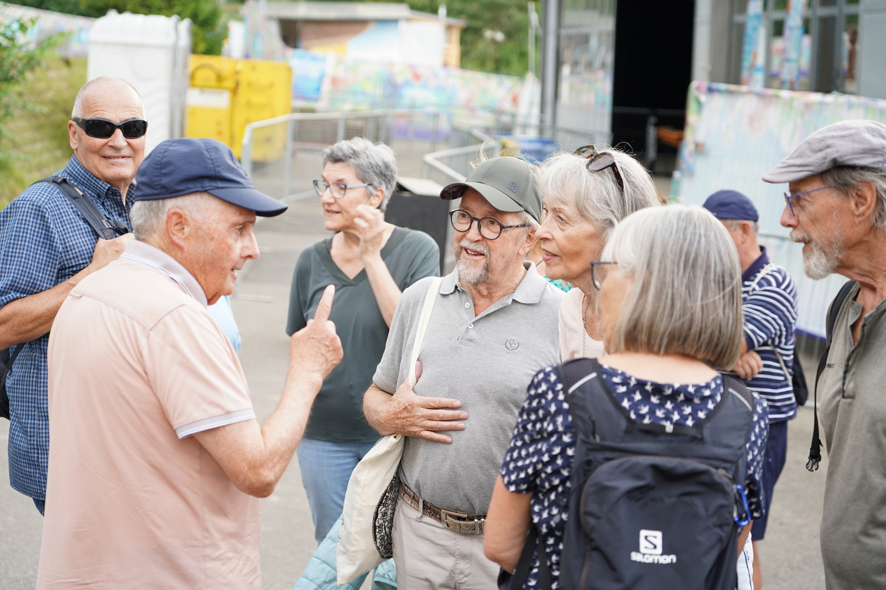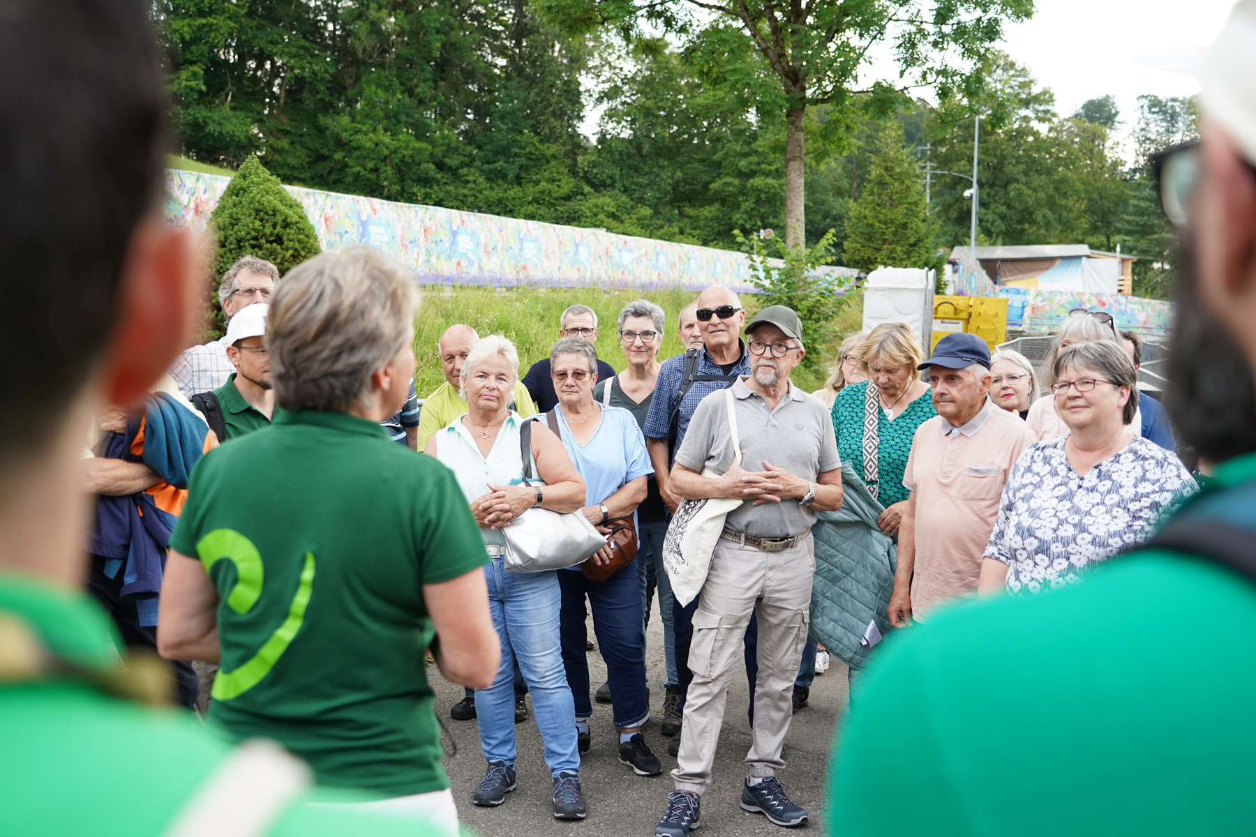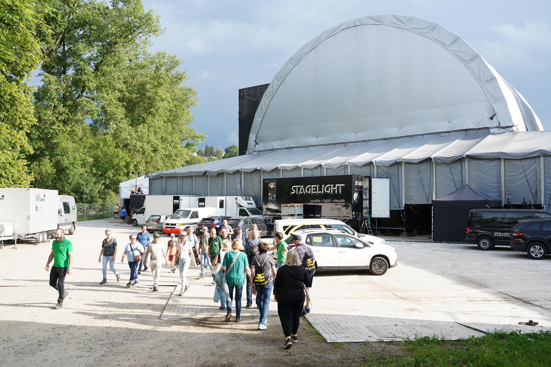 Die Ortsbürgergemeinde unterstützt das Openair St. Gallen, da es mit seiner Einzigartigkeit und kulturellen Relevanz zur Lebensqualität unserer Stadt beiträgt. Als Dankeschön konnten Bürgerinnen und Bürger am Mittwochabend vor dem offiziellen Start des Festivals an einer exklusiven Führung hinter die Kulissen teilnehmen. Während der rund einstündigen Besichtigung erhielten die Teilnehmenden der Ortsbürgergemeinde spannende Einblicke hinter die Bühnen, in verschiedene Restaurants und sogar in den Backstage-Bereich. Im Anschluss an die Führung genossen die Bürgerinnen und Bürger einen feinen Apéro im VIP-Bereich.