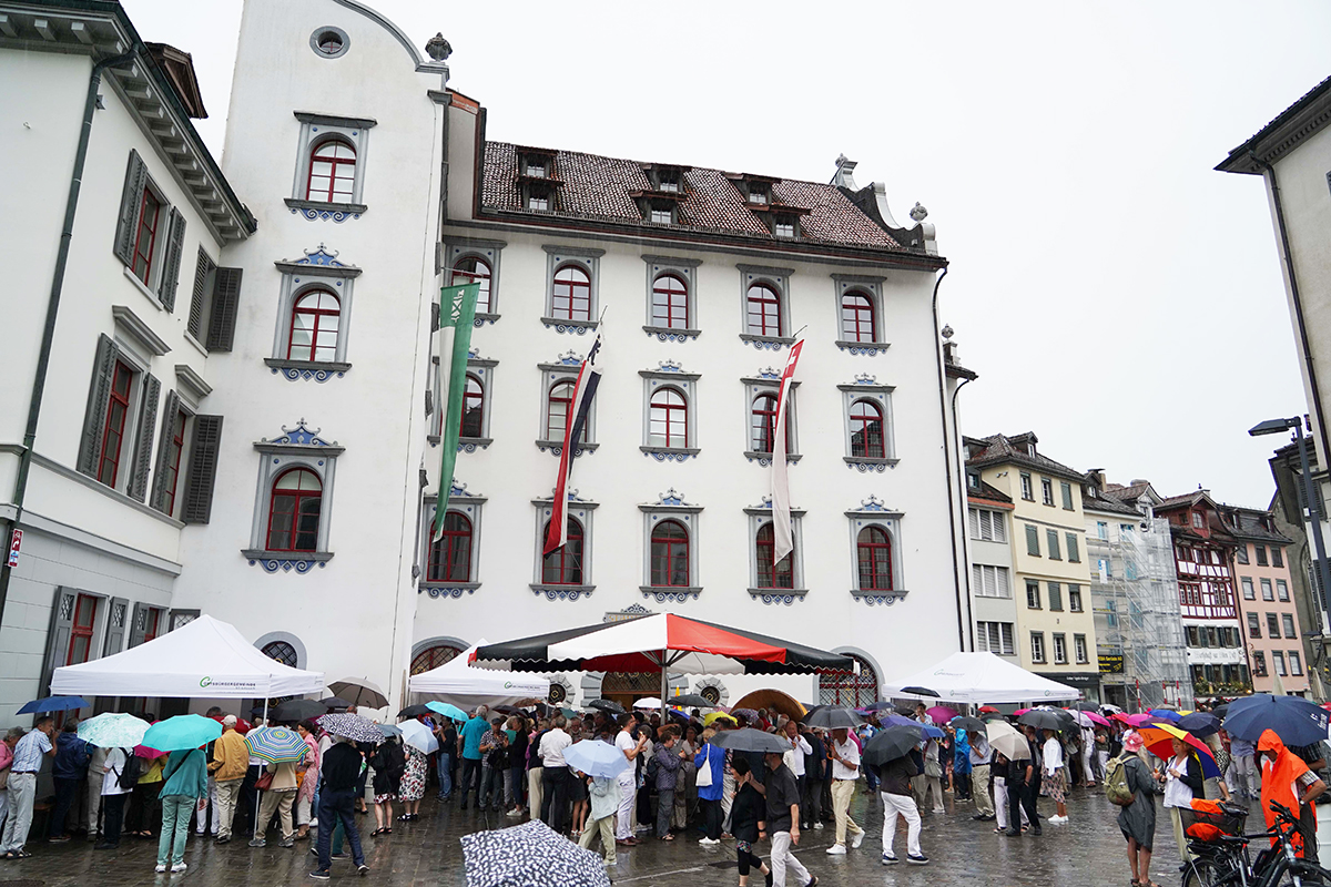 Der gemeinsame Gottesdienst am Nationalfeiertag, zu dem der Stadtrat und der Bürgerrat zusammen mit verschiedenen Glaubensgemeinschaften eingeladen haben, stand dieses Jahr unter dem Thema «in Resonanz» und ging darauf ein, wie Musik, Klänge und andere Schwingungen das Zusammenleben beeinflussen. «Resonante Beziehungen sind eine Voraussetzung dafür, in gegenseitiger Rücksichtnahme und Achtung unsere Vielfalt in der Einheit zu leben», sagte Bürgerratspräsidentin Katrin Meier mit Verweis auf die Schweizerische Bundesverfassung und rief dazu auf, einander zuzuhören, sich mitzuteilen, aufeinander einzugehen und den Austausch zu pflegen. Der letzte Punkt wurde im Anschluss an den Gottesdienst gleich aufgenommen: Die 1. August-Feier klang mit dem traditionellen Umtrunk vor dem Stadthaus der Ortsbürgergemeinde aus.