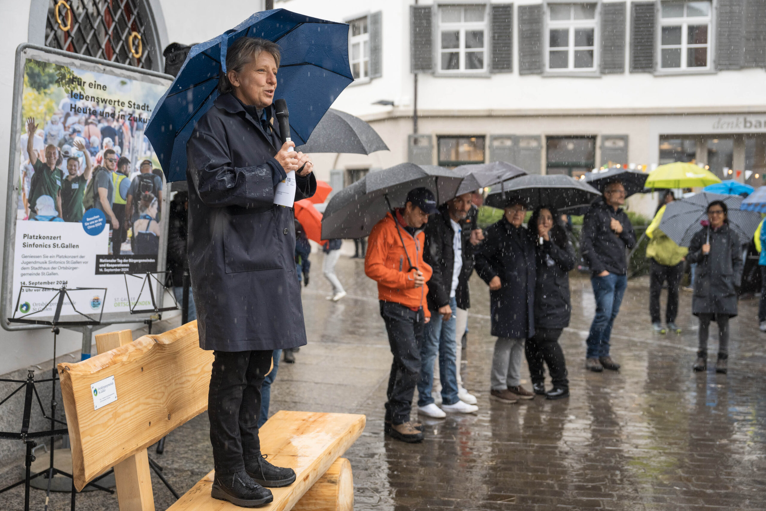 Die diesjährige Bürgerwanderung am 14. September 2024 fand zeitgleich mit dem erstmals stattfindenden nationalen Tag der Bürgergemeinden und Kooperationen statt, mit dem schweizweit auf die vielfältigen Aktivitäten der Bürgergemeinden zugunsten der Gesellschaft aufmerksam gemacht wird. Zur Feier des Tages organisierte die Ortsbürgergemeinde St.Gallen ein Platzkonzert der Jugendmusik Sinfonics St.Gallen 1948 vor dem Stadthaus. Das Konzert der jungen Musikerinnen und Musiker bildete den Auftakt zur Bürgerwanderung 2024. Im Anschluss begrüsste die Bürgerratspräsidentin Katrin Meier die zahlreichen Teilnehmerinnen und Teilnehmer, die sich trotz des Herbsteinbruchs vor dem Stadthaus versammelt hatten.