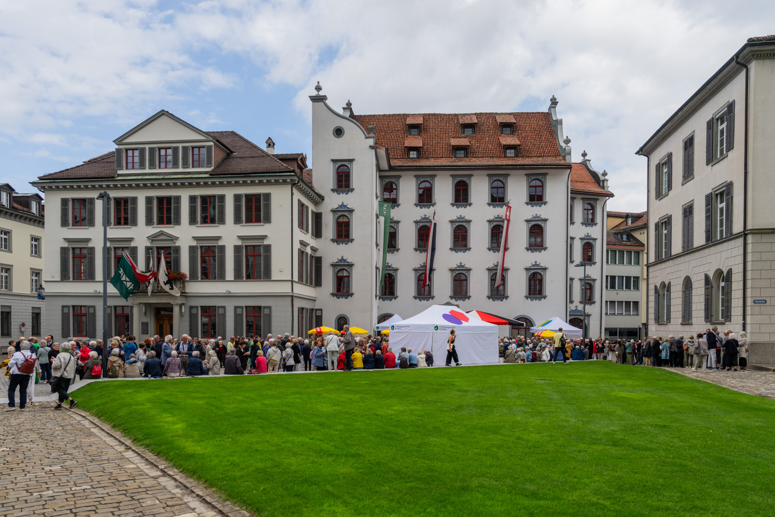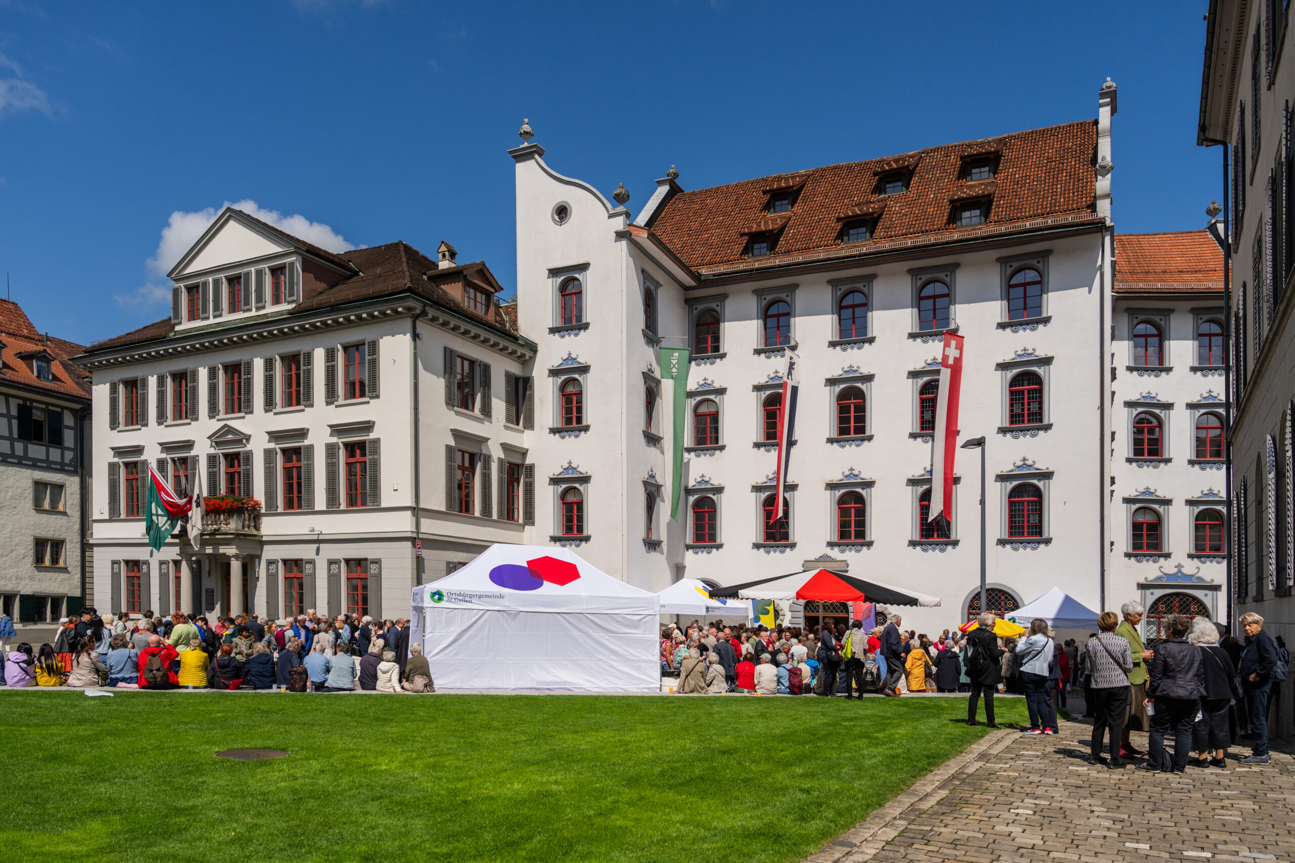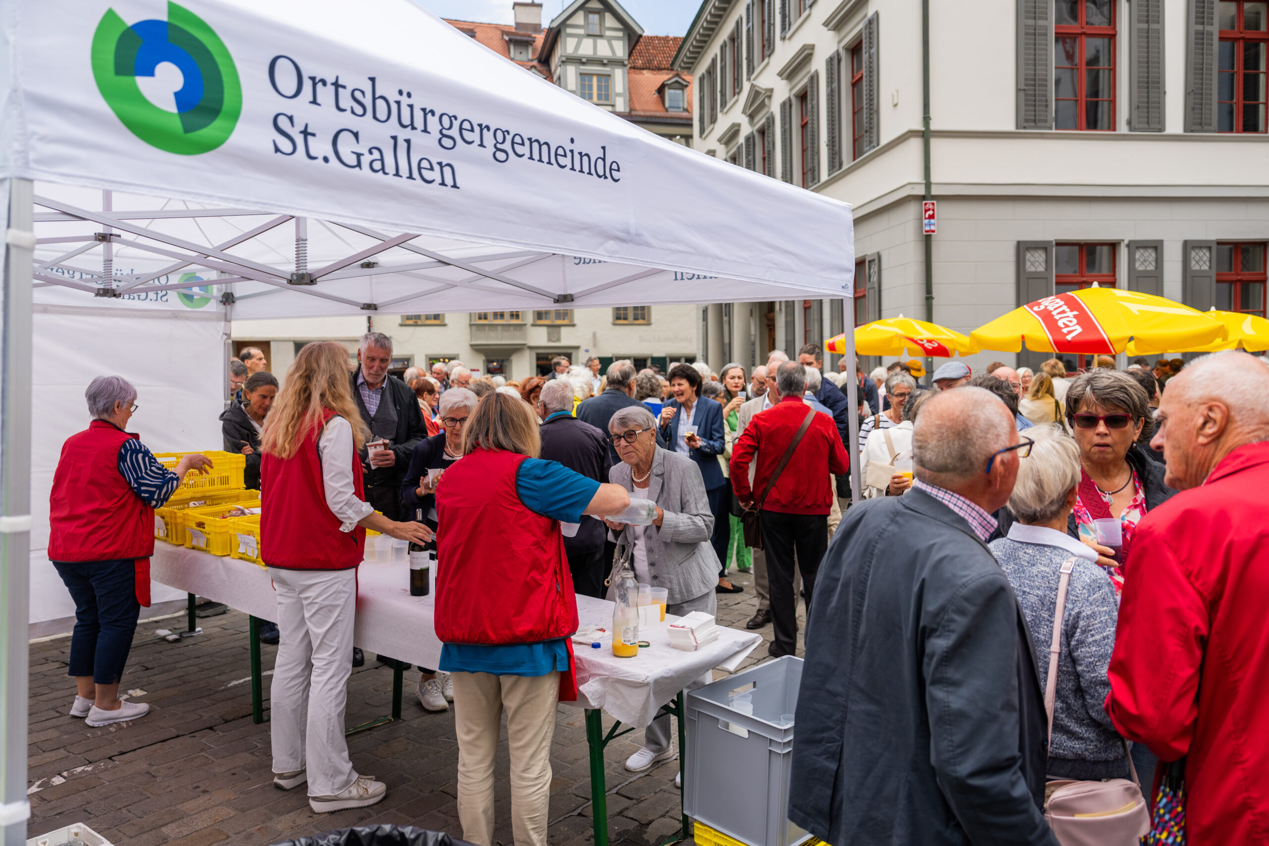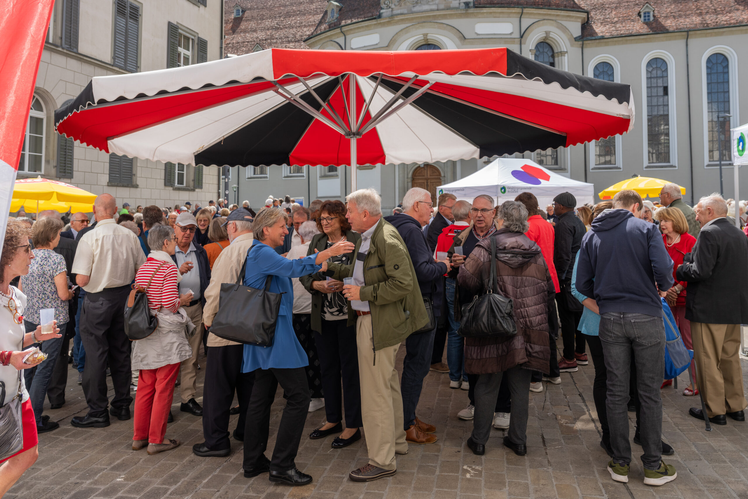 Der Bürgerrat und der Stadtrat luden alle Einwohnerinnen und Einwohner der Stadt zur Nationalfeier ein. Unter dem Thema «in guten Händen» gestalteten Vertreterinnen und Vertreter verschiedener Glaubensgemeinschaften einen stimmungsvollen Gottesdienst in der vollen Kathedrale. Im Anschluss an die schöne Feier fand der traditionelle Umtrunk vor dem Stadthaus der Ortsbürgergemeinde statt, den die engagierten Helferinnen und Helfer der Ortsbürgergemeinde St.Gallen, der Stadt St.Gallen und der beteiligten Kirchen gemeinsam ausrichteten. Bei trockenem Wetter und etwas Sonnenschein nutzten die Besucherinnen und Besucher die Gelegenheit, gemeinsam anzustossen und ins Gespräch zu kommen.