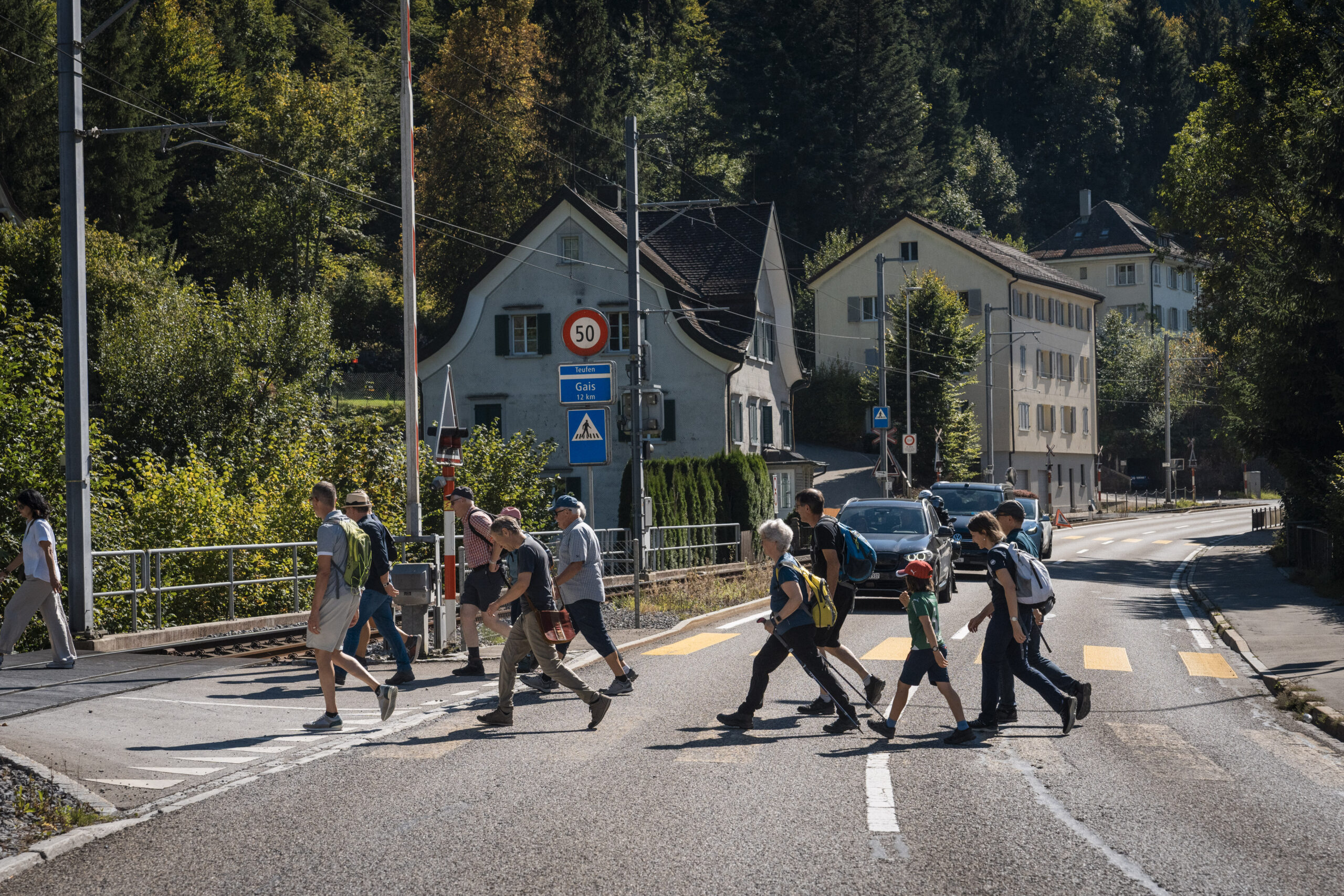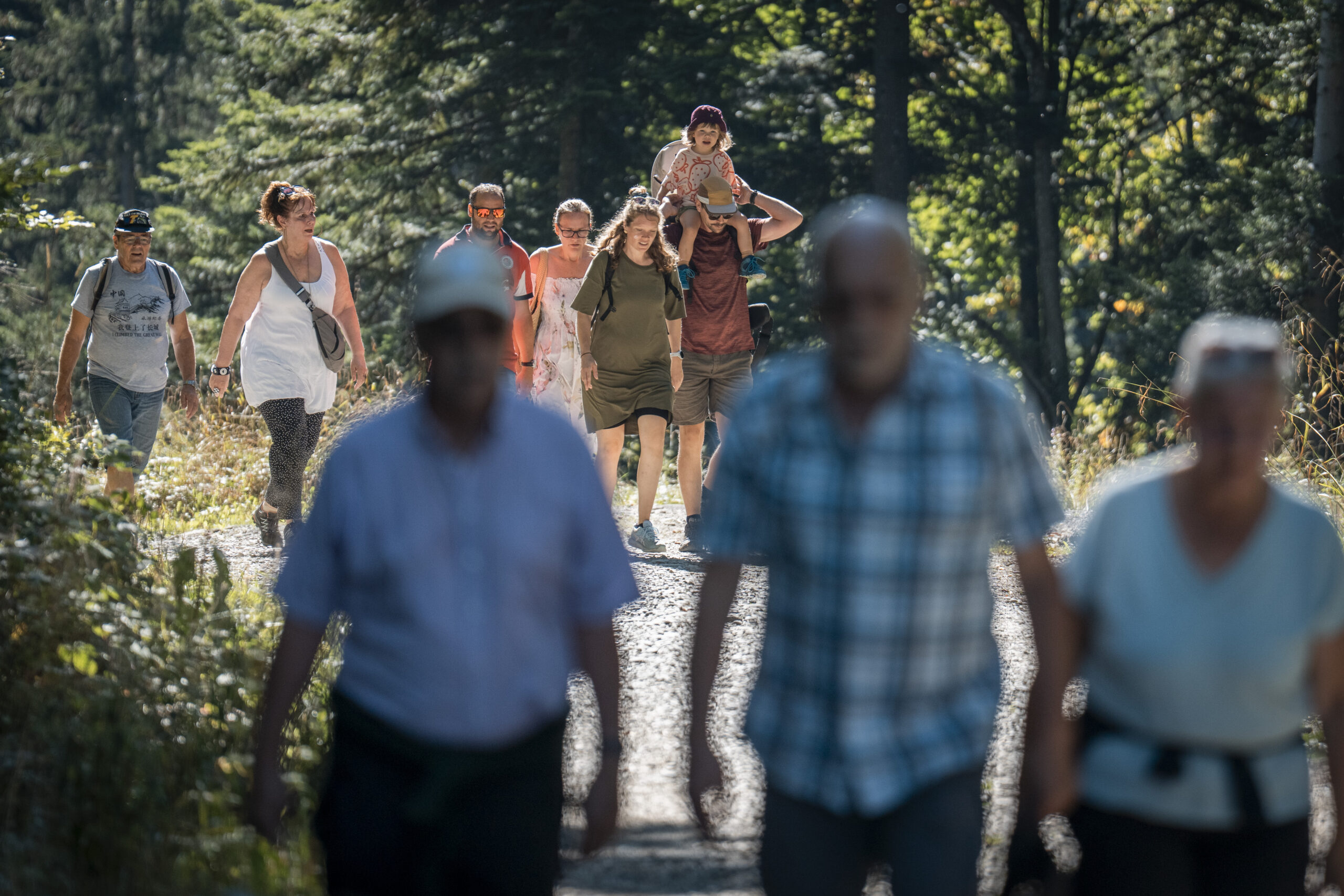 Die klassische Route führte vom Schlössli Haggen durch das Wattbachtobel, entlang eines von vier Waldreservaten im ortsbürgerlichen Wald. Dieser ist mit seltenen und artenreichen Waldgesellschaften wertvoller Lebensraum für eine grosse Vielfalt an Tieren und Pflanzen. Weiter durchs Brandtobel wanderten die Teilnehmenden über eine der instabilsten Strassen in den Wäldern der Ortsbürgergemeinde. Immer wieder führen Ausspülungen zu Hangrutschen – in diesem Sommer führte der Forstbetrieb der Ortsbürgergemeinde dort Sanierungsarbeiten aus. Über den Unteren Brand führte der Weg schliesslich zum Landwirtschaftsbetrieb Herbrig.