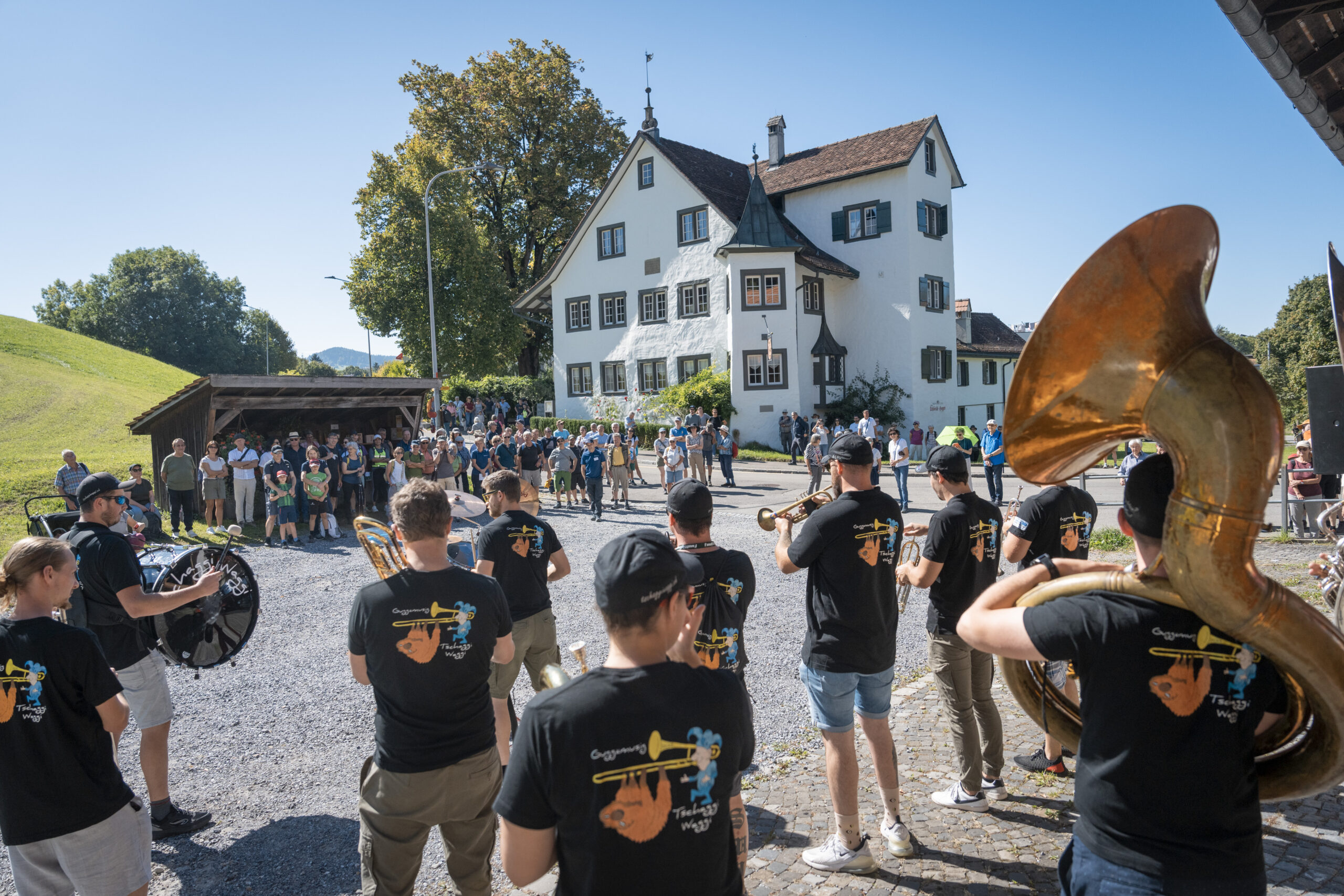 In diesem Jahr besammelten sich die Teilnehmenden beim ortsbürgerlichen Restaurant Schlössli Haggen. Traditionell wird die Bürgerwanderung mit einem Platzkonzert eröffnet – diesmal sorgte die Guggenmusik Tschaggi Waggi für einen klangvollen Start. Anschliessend hiess Bürgerratspräsidentin Katrin Meier die zahlreichen Wandernden willkommen, bevor diese sich auf die Wanderung begaben.