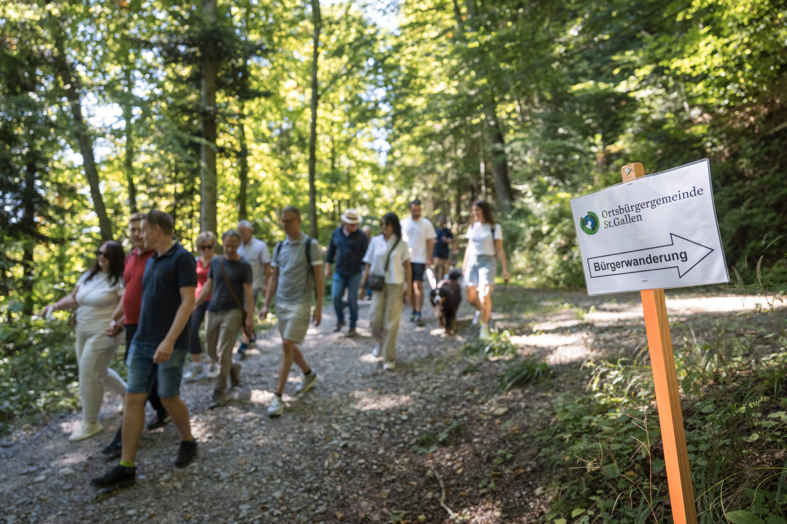 Rund 1000 Bürgerinnen und Bürger sowie ihre Verwandten und Freunde nahmen am 20. September 2025 an der jährlichen Bürgerwanderung der Ortsbürgergemeinde St.Gallen teil. Bei herrlichem Spätsommerwetter konnten die Teilnehmenden auf verschiedenen Routen den Weg durch ortsbürgerliche Wälder zum Festplatz auf einem der 17 ortsbürgerlichen Landwirtschaftsbetriebe, dem Hof Herbrig, geniessen.