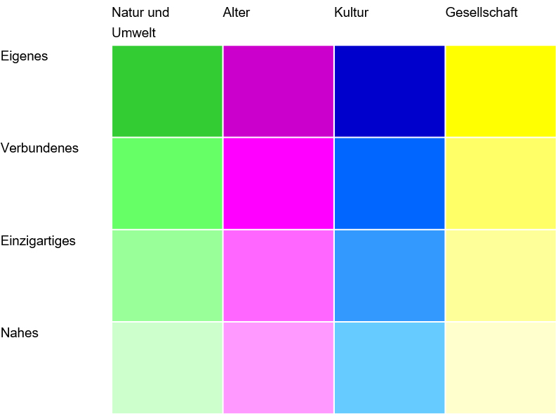 Die Stiftung der Ortsbürgergemeinde St.Gallen fokussiert ihre Förderung auf die vier Themenfelder Natur und Umwelt, Alter, Kultur sowie Gesellschaft, zu denen die Ortsbürgergemeinde einen starken inneren Zusammenhang hat. In jedem Themenfeld werden vier Bereiche berücksichtigt: Eigenes, Verbundenes, Einzigartiges und Nahes.